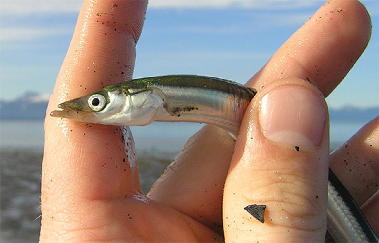 Holding a Pacific Sand Lance. Photo: Sean Rooney